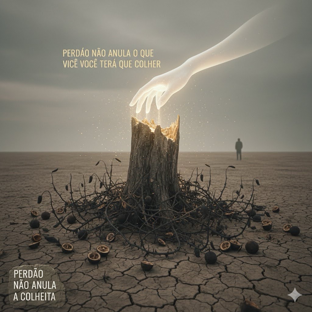 Muitas vezes, quando buscamos ou oferecemos perdão, esperamos que tudo volte a ser como era antes. Mas a vida não é um editor de texto onde podemos simplesmente apertar “desfazer”. O perdão lida com a culpa; a colheita lida com a consequência.